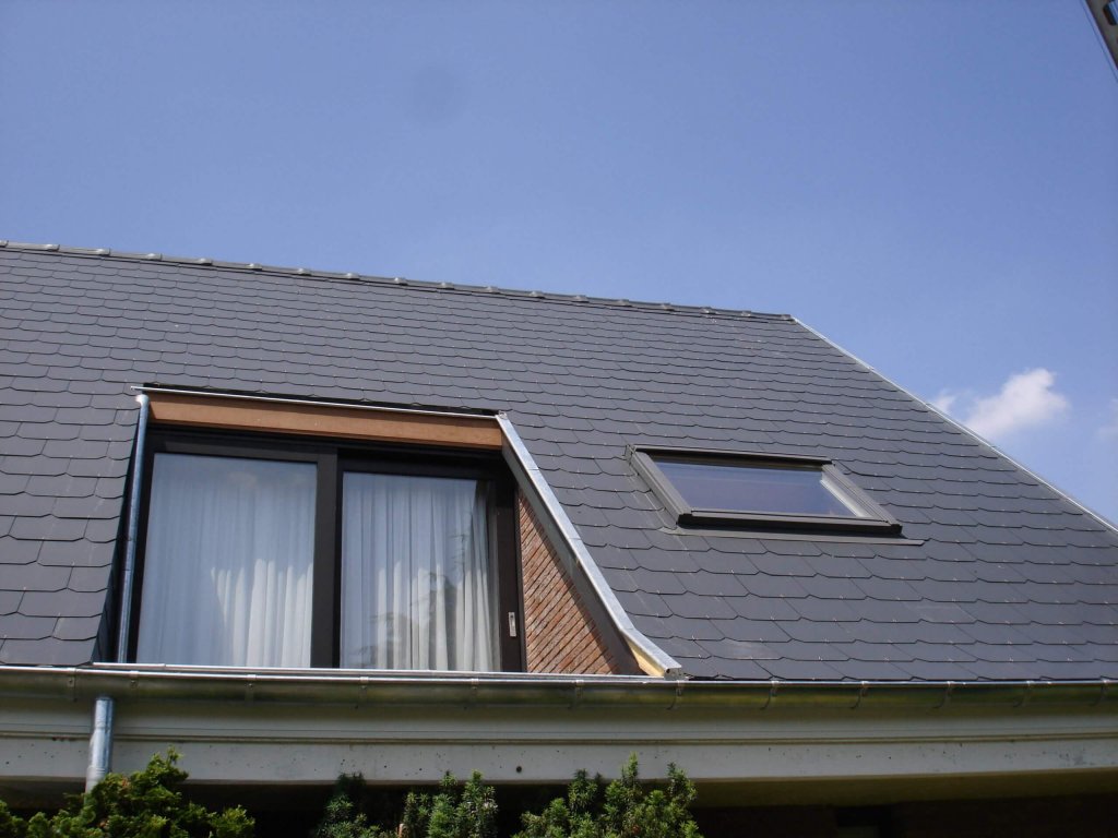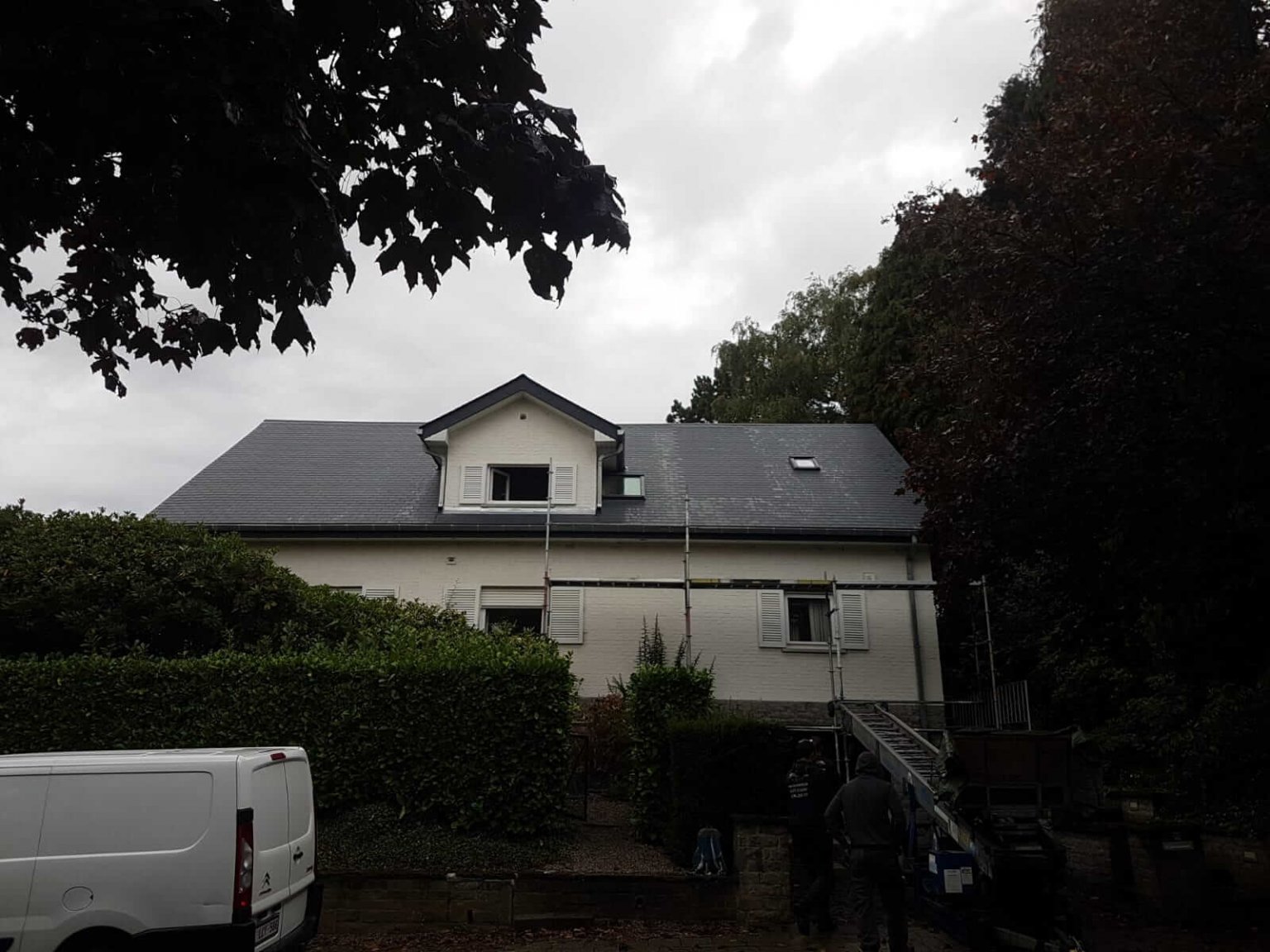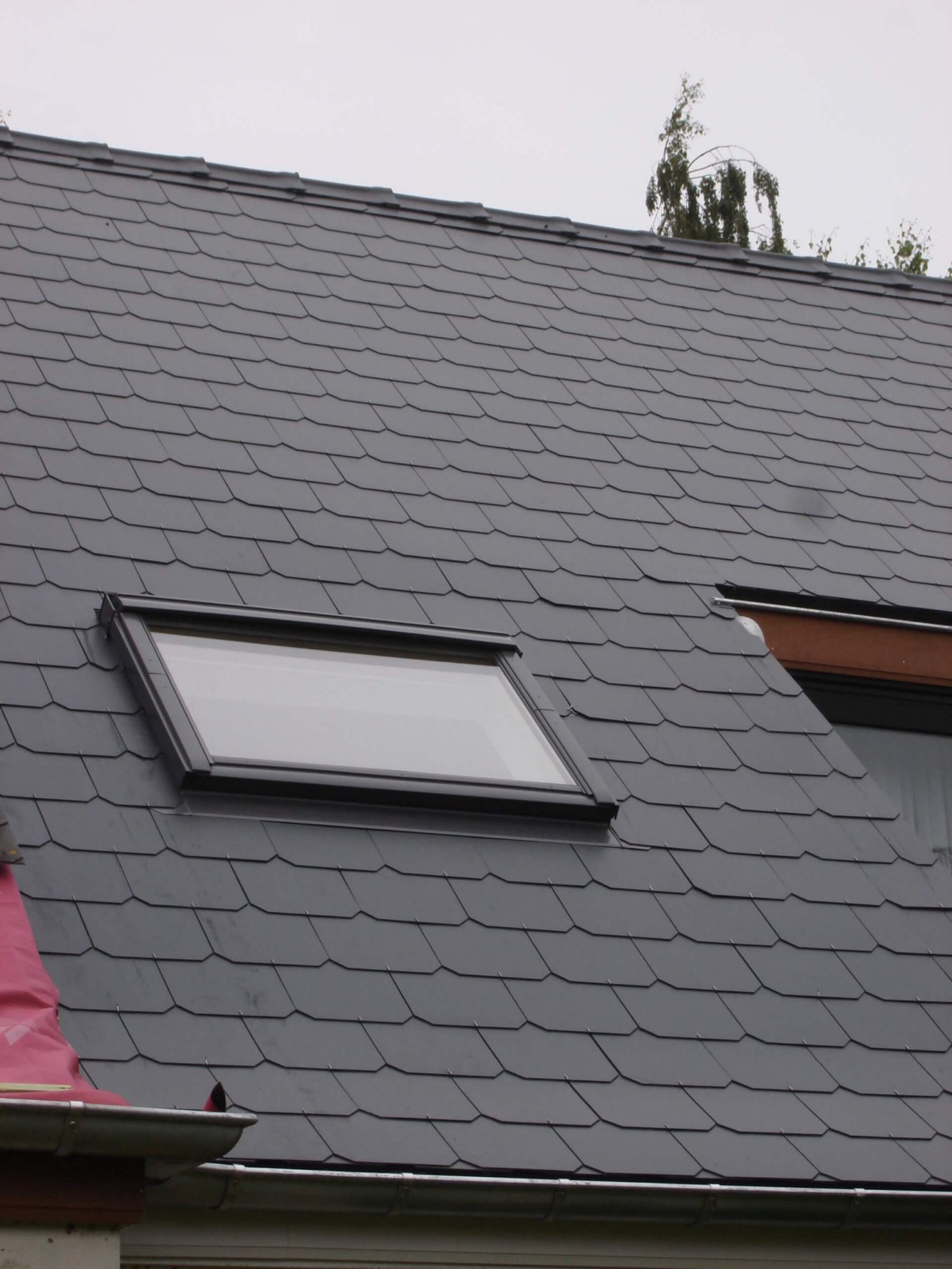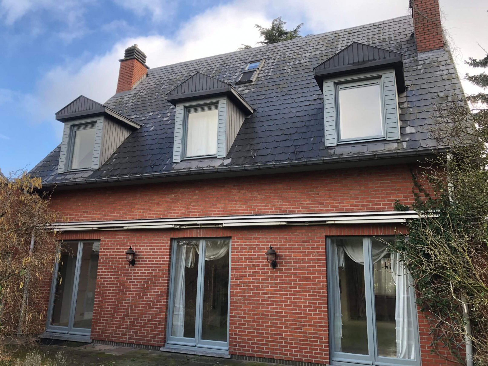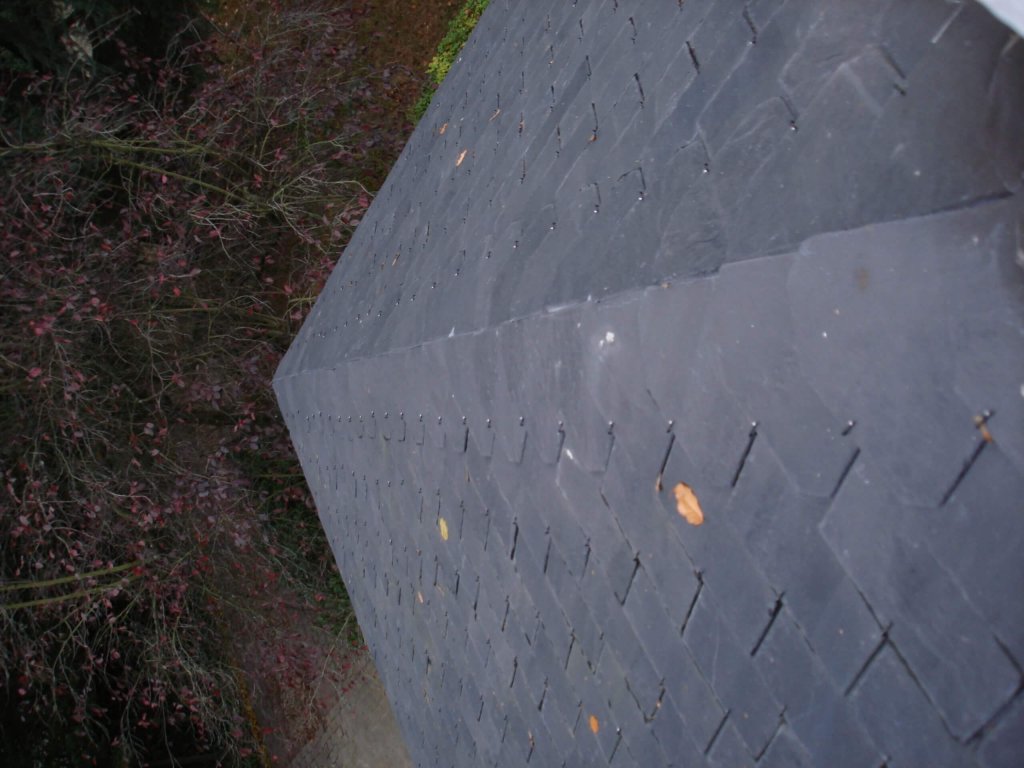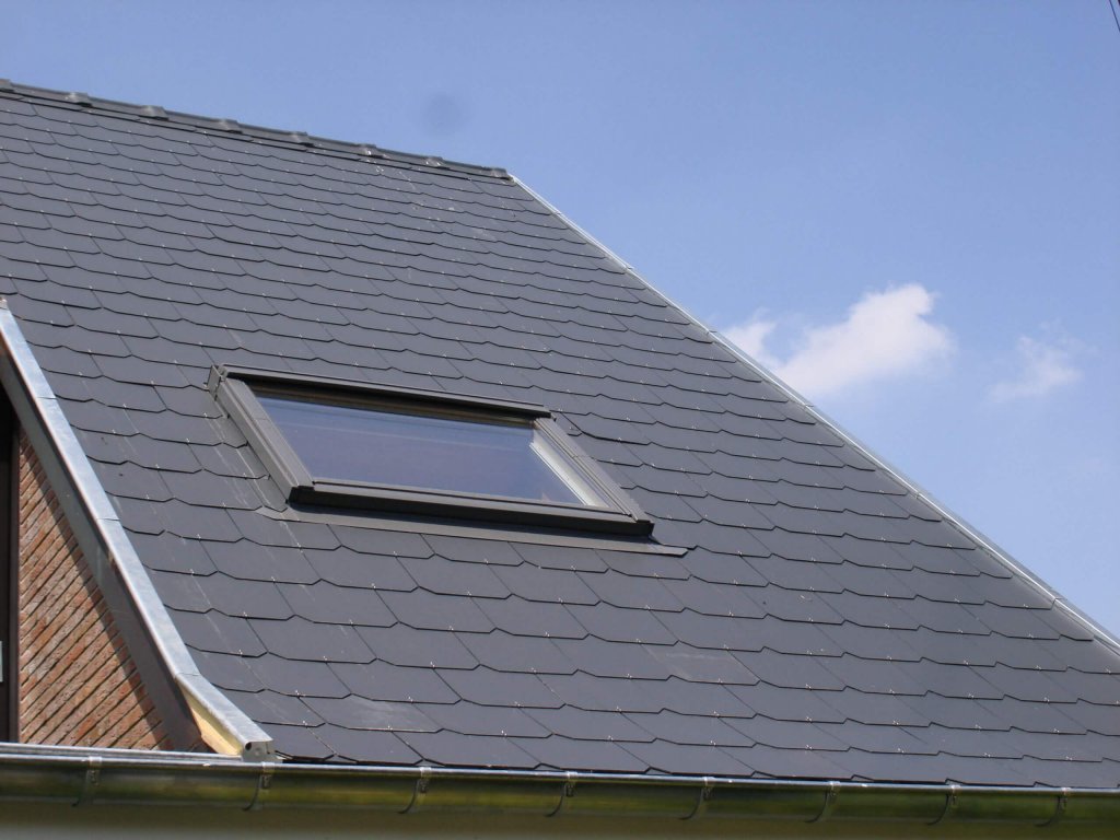 Couverture en ardoises artificielles, dépassants en Cedral Board et peinture façades