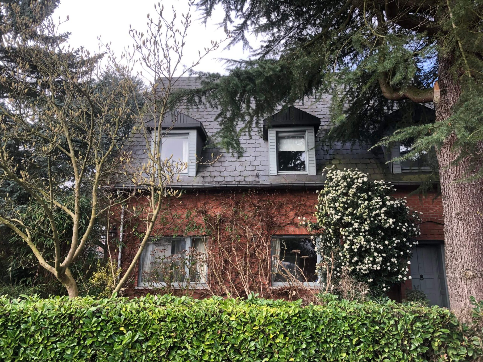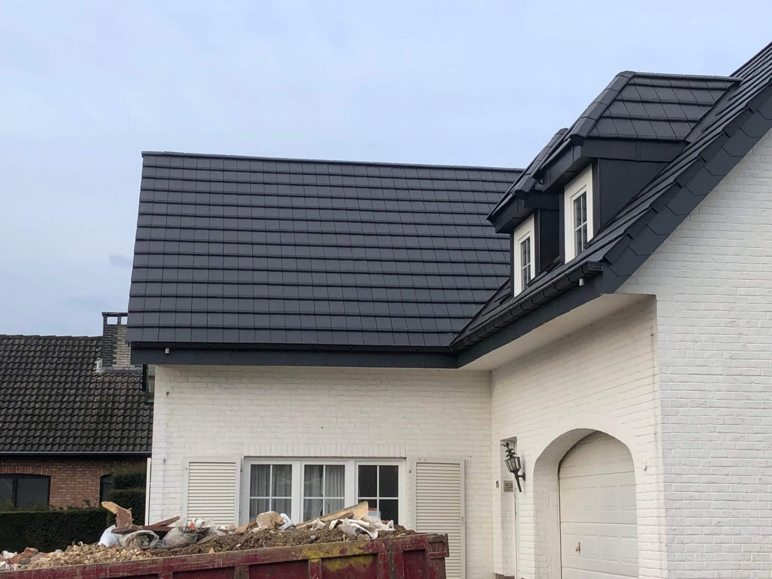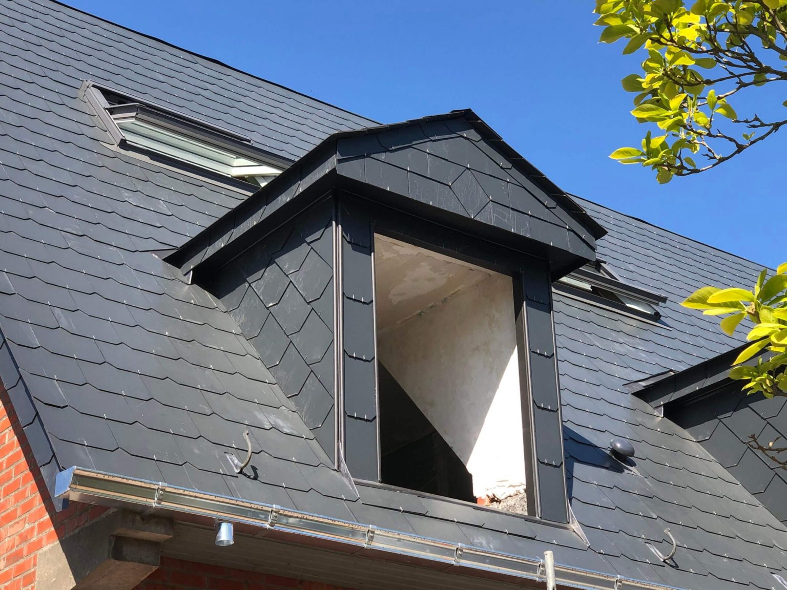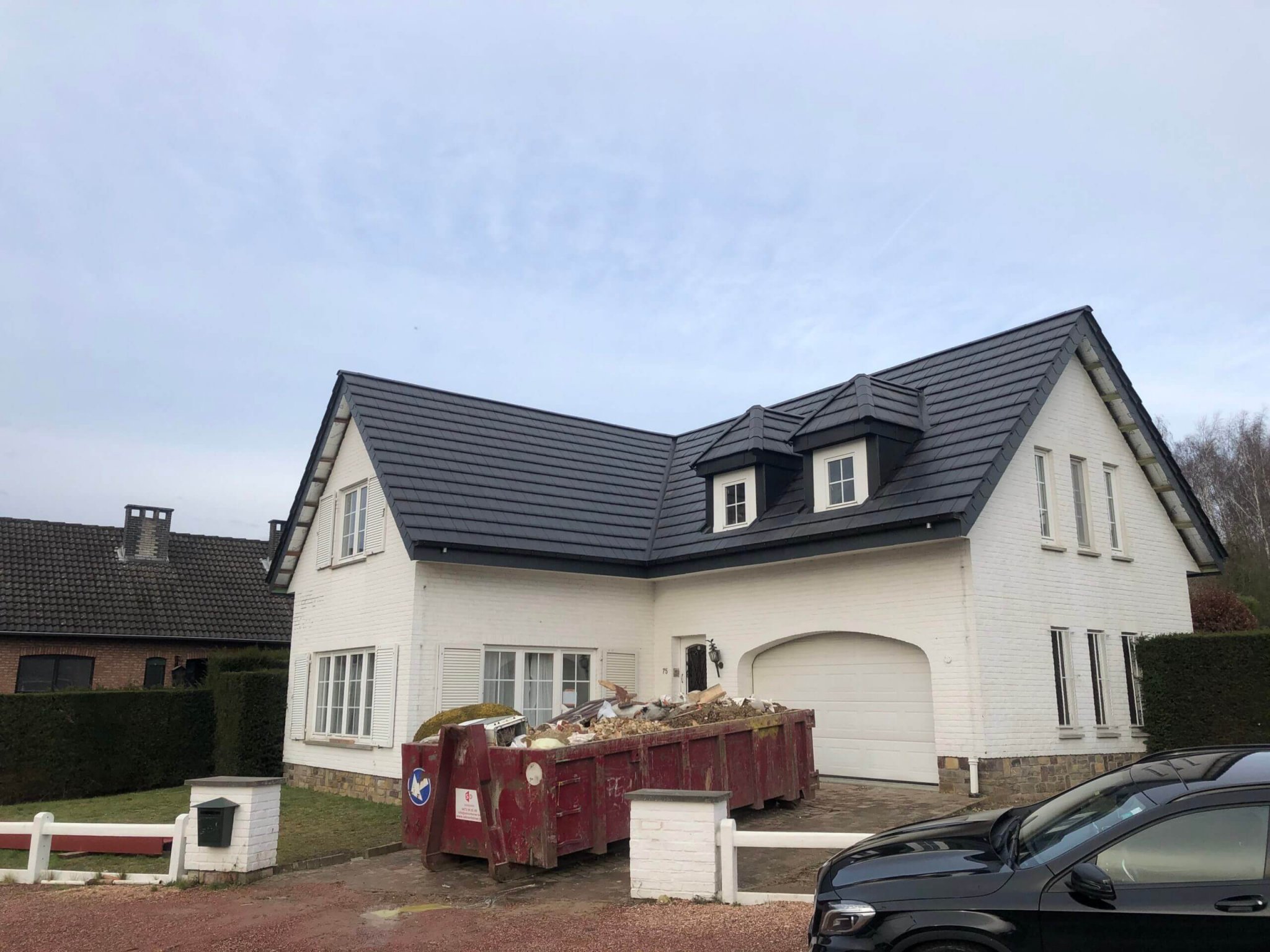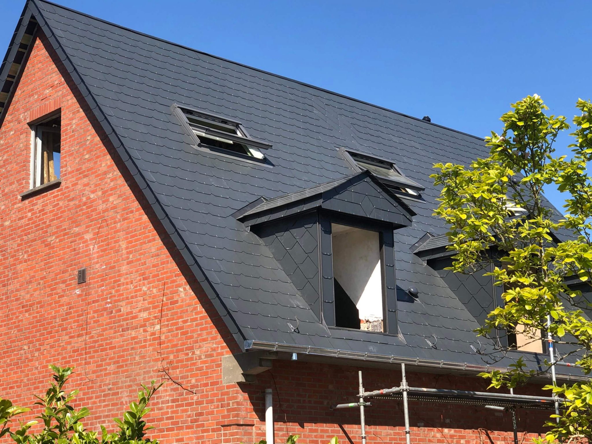 Couverture en ardoises artificielles, dépassants en Cedral Board et peinture façades
