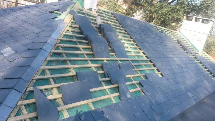 Transformation de charpente et couverture en ardoises artificielles